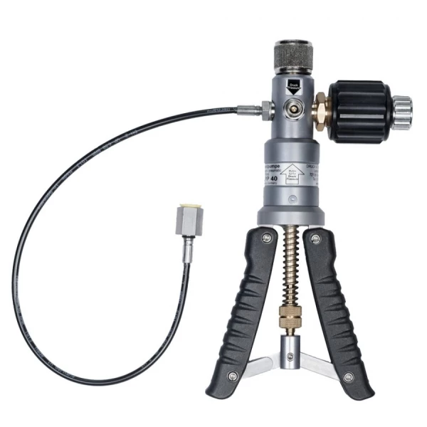Die Druckprüfpumpe LPP 40 dient der Erzeugung von Druck und Vakuum zur Überprüfung, Einstellung und Kalibrierung von mechanischen und elektronischen Druckmessgeräten durch Vergleichsmessungen. Trotz ihrer kompakten Größe ist die Druckprüfpumpe LPP 40 einfach zu bedienen und ermöglicht die exakte Erzeugung der erforderlichen Prüfdrücke; ein Umschalter ermöglicht auch die Erzeugung von Vakuum. Die LPP 40 ist mit einem Feinregulierventil zur Hochdruckerzeugung und präzisen Einstellung der Drücke ausgestattet. Das Referenzgerät wird direkt an die Oberseite der Pumpe geschraubt und das zu prüfende Gerät wird über den mitgelieferten Anschlussschlauch mit einem Adapter 1/4 "BSP-Innengewinde (frei drehbar) angeschlossen.