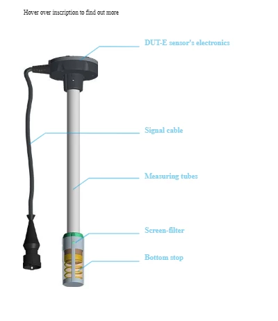 DUT-E fuel level sensors are used for accurate fuel level and volume measurements in tanks of vehicles and stationary units. DUT-E can be used to determine the current fuel volume and the change in volume (refueling or draining) of fuel in the tank.