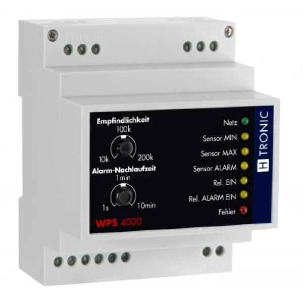 The level differential switch WPS 4000 is suitable for automatic level monitoring of conductive liquids in containers, wells, water tanks and the like. Monitoring takes place via electrodes. Among other things, the device protects units and systems from damage due to leaks, unnecessary fluid losses and from dehydration and flooding. It monitors and controls liquid levels wherever a certain fill level must be maintained. For installation in sub-distributions, switchboards, surface-mounted enclosures, etc.