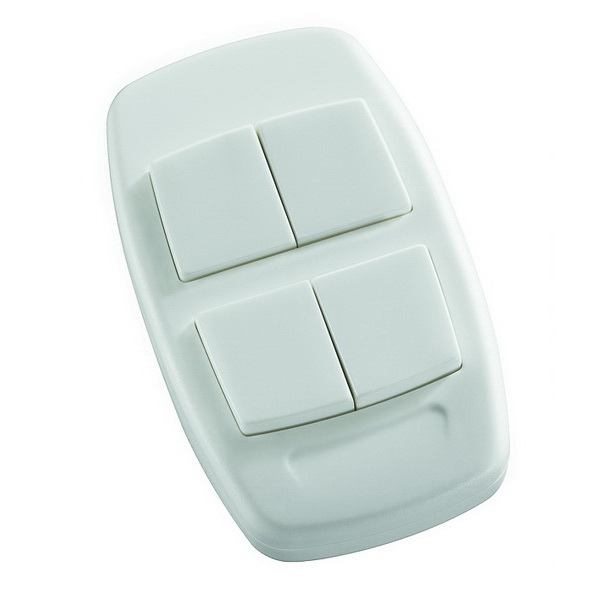 El radiotransmisor KYMASGARD~ HT4 - FSE es un transmisor manual sin pilas ni mantenimiento con cuatro pulsadores independientes. Su diseño altamente ergonómico hace que sea muy fácil de sujetar. No obstante, el transmisor también se puede pegar a la pared con la cinta adhesiva suministrada.