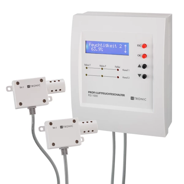 Met behulp van twee sensoren (deze zijn bij de levering inbegrepen) kan de PLS 1000 de huidige relatieve vochtigheid en de huidige temperatuur in twee omgevingen meten. De PLS 1000 gebruikt deze waarden om de absolute vochtigheid en de respectievelijke dauwpunten te bepalen. Op basis van deze waarden kunnen 5 geïntegreerde functies worden gebruikt om verschillende luchtvochtigheids- en temperatuurregelingen te implementeren. Ruimteventilatoren voor toevoer- en afvoerlucht kunnen direct worden aangestuurd via 4 geïntegreerde, potentiaalvrije relais. Typische toepassingen zijn het meten van luchtvochtigheid en temperatuur, het automatisch ventileren, drogen of bevochtigen van ruimtes, het handmatig aansturen van kamerventilatoren en het implementeren van een 2-kanaals temperatuur- en vochtigheidsschakelaar.