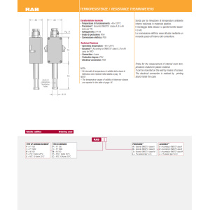 Weerstandsthermometer voor dompelen met aansluitkop, geschikt voor algemene metingen en voorschriften voor installaties met lage drukken. De procesaansluiting wordt gerealiseerd door middel van een onderschroefdraadnippel (vast of door middel van) knelkoppelingen of verschuifbare flenzen (zie accessoires). De elektrische aansluiting wordt gemaakt door een keramisch aansluitblok dat zich in de aansluitkop bevindt. Ook verkrijgbaar met analoge 4-20 mA uitgang.
